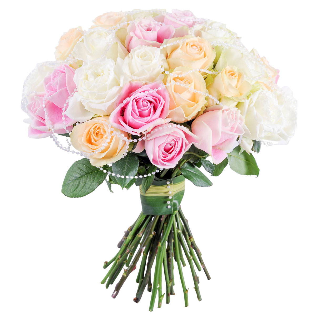 Роза одноголовая, декоративные бусинки. Упаковка (лента, пленка, крафт, сетка, пленка матовая)