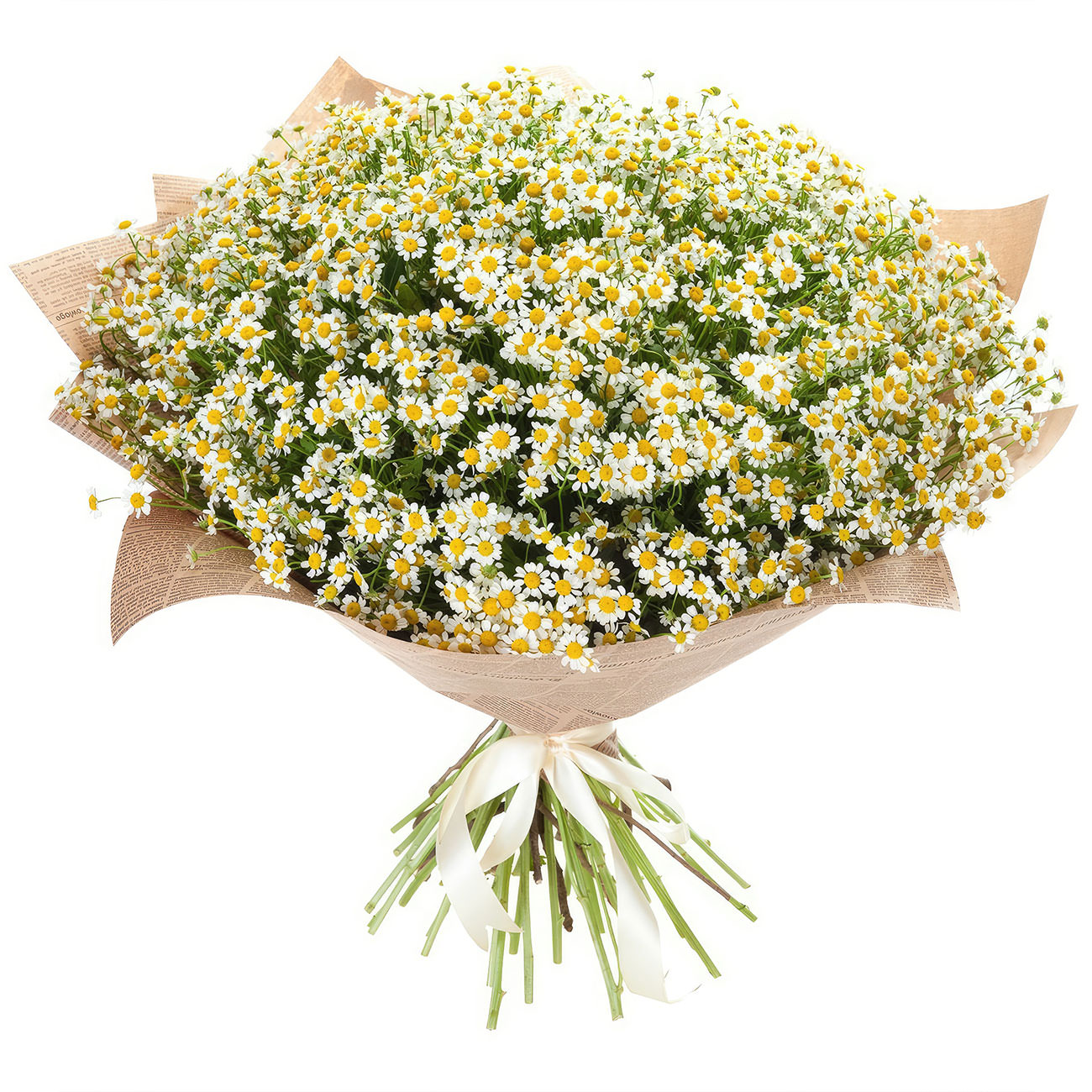 Легкость и свежесть бело-желтой гаммы танацетума создают атмосферу легкости. Композиция состоит исключительно из танацетума, аккуратно обернутого в крафт-бумагу. Букет перевязан нежной атласной лентой, придающей ему элегантность. Этот букет станет отличным подарком для учительницы на День знаний.