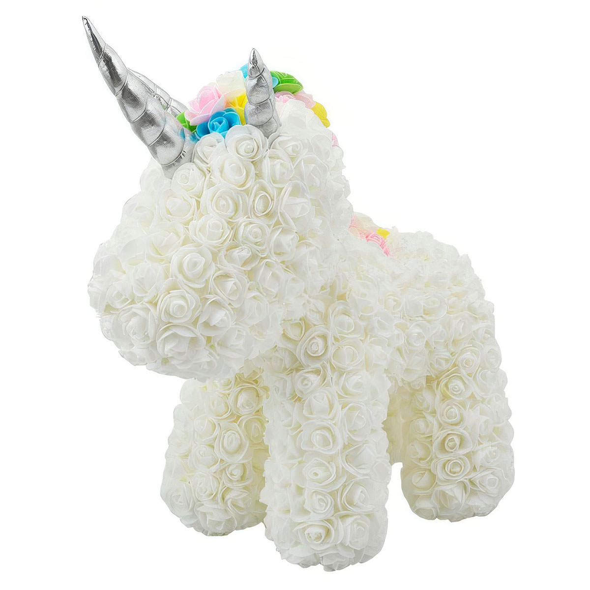 Единорог из роз белый — созданный из более чем 550 великолепных 3D розочек.