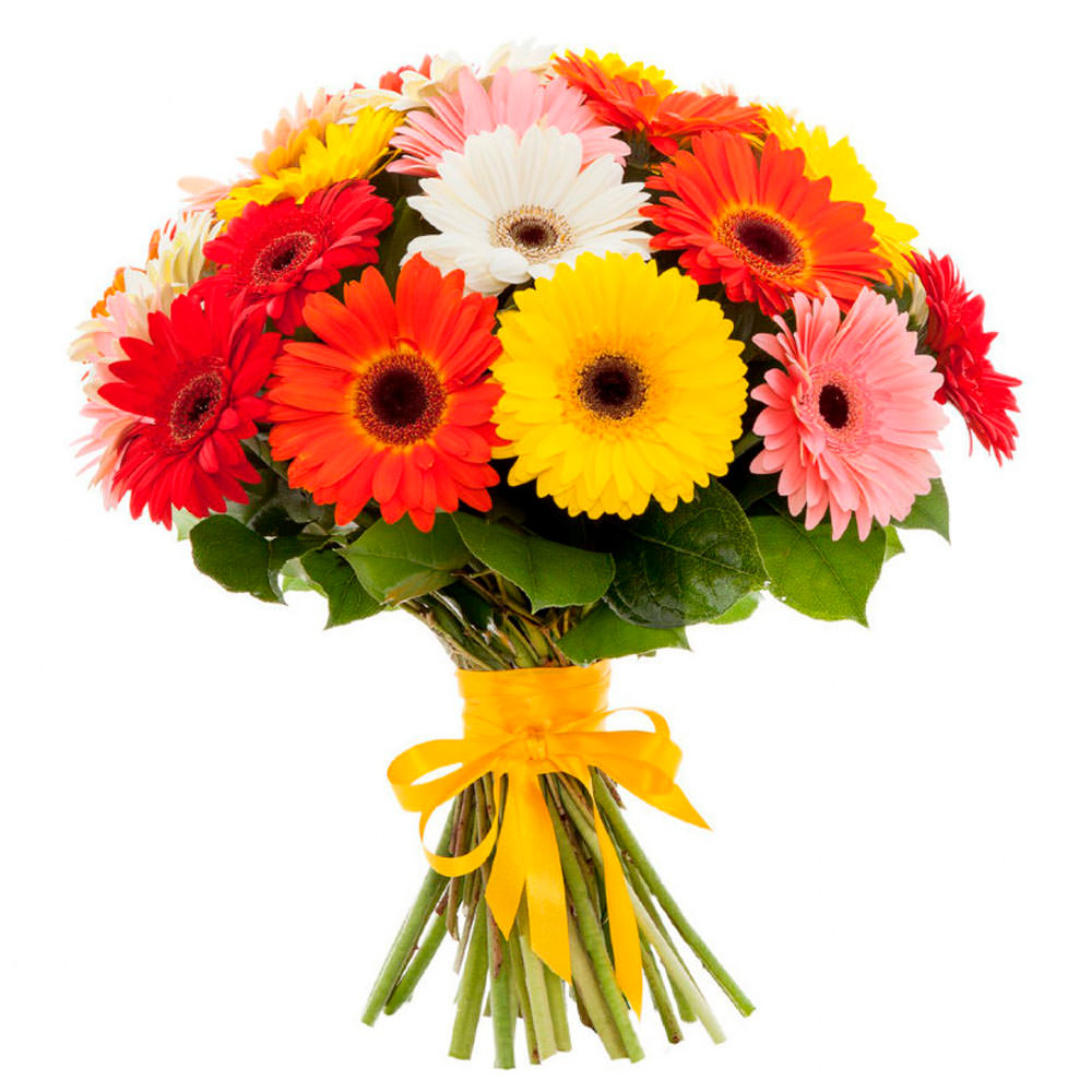 Гербера ассорти из красной, желтой, белой, розовой и оранжевой с гарантией качества, цены и быстрой доставки!