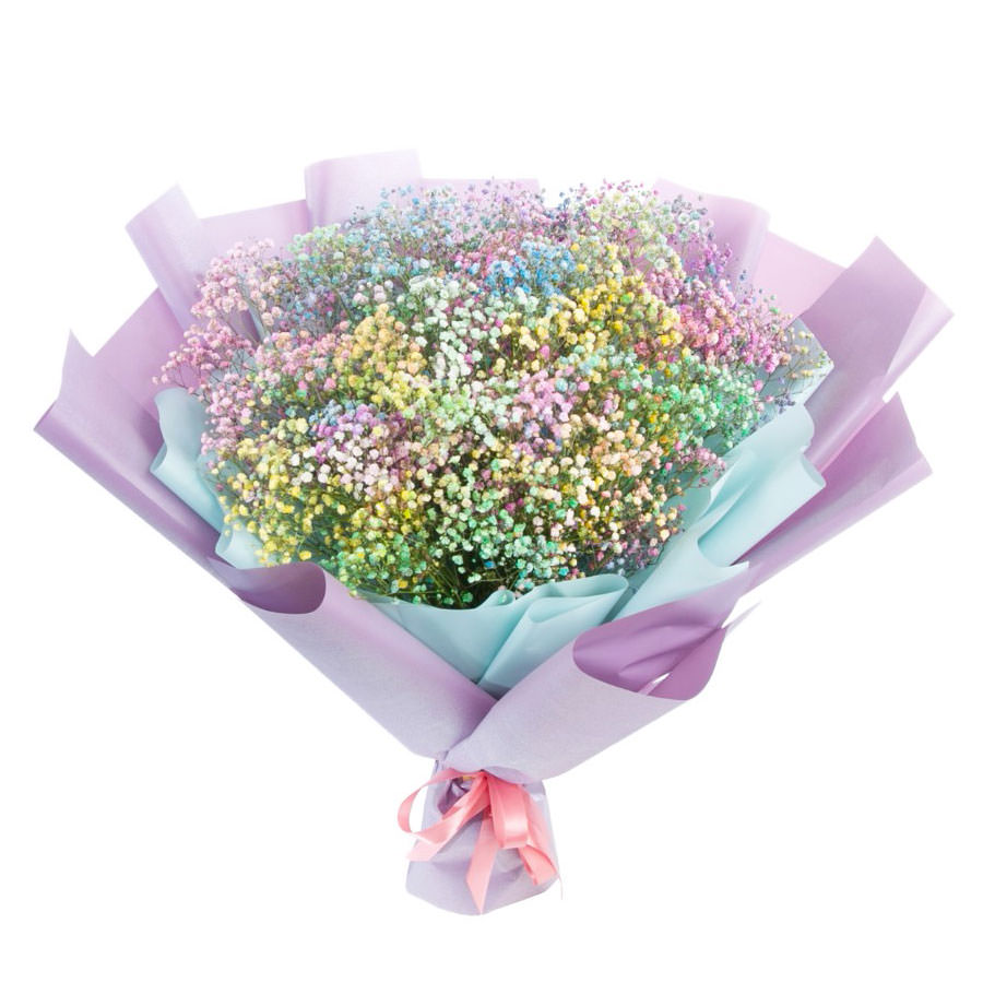 Гипсофила ассорти из желтой, розовой, зеленой, белой и синей можно купить с бесплатной круглосуточной доставкой в Архангельске по цене за 270 руб. Только свежайшие цветы. Свыше 40 дизайнов упаковок. Букеты оформляют более 90 флористов.