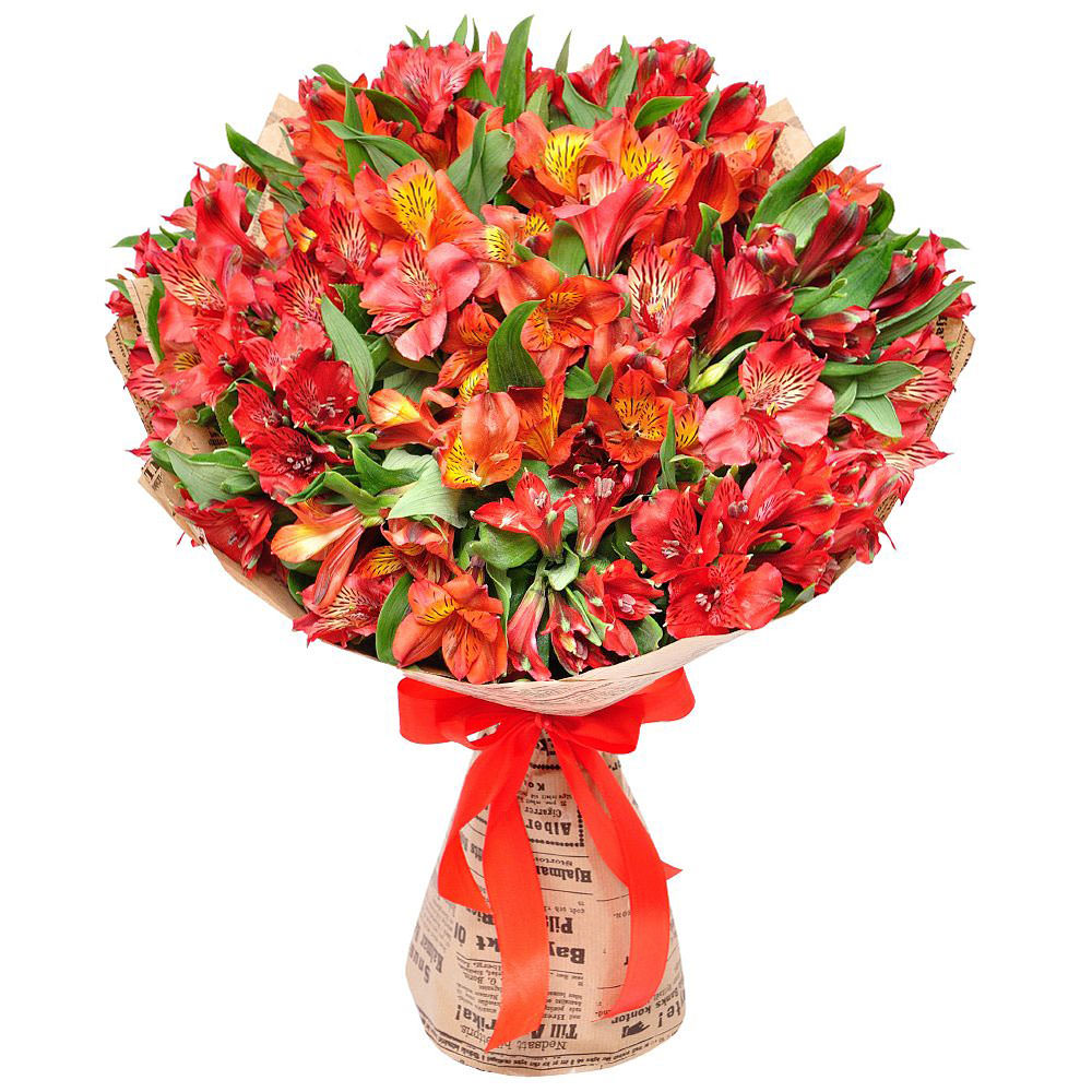 Монобукет из красных альстромерий «Огненная радость» с гарантией качества, цены и быстрой доставки!
