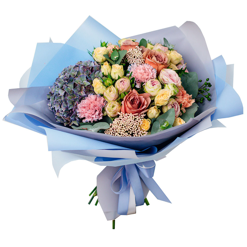 | Состав | Эвкалипт, Розы, Кустовые розы, Гвоздики, Гортензии |