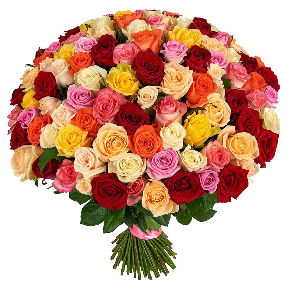 Российская роза ассорти из красной, розовой, желтой, бежевой, оранжевой и белой с гарантией качества, цены и быстрой доставки!